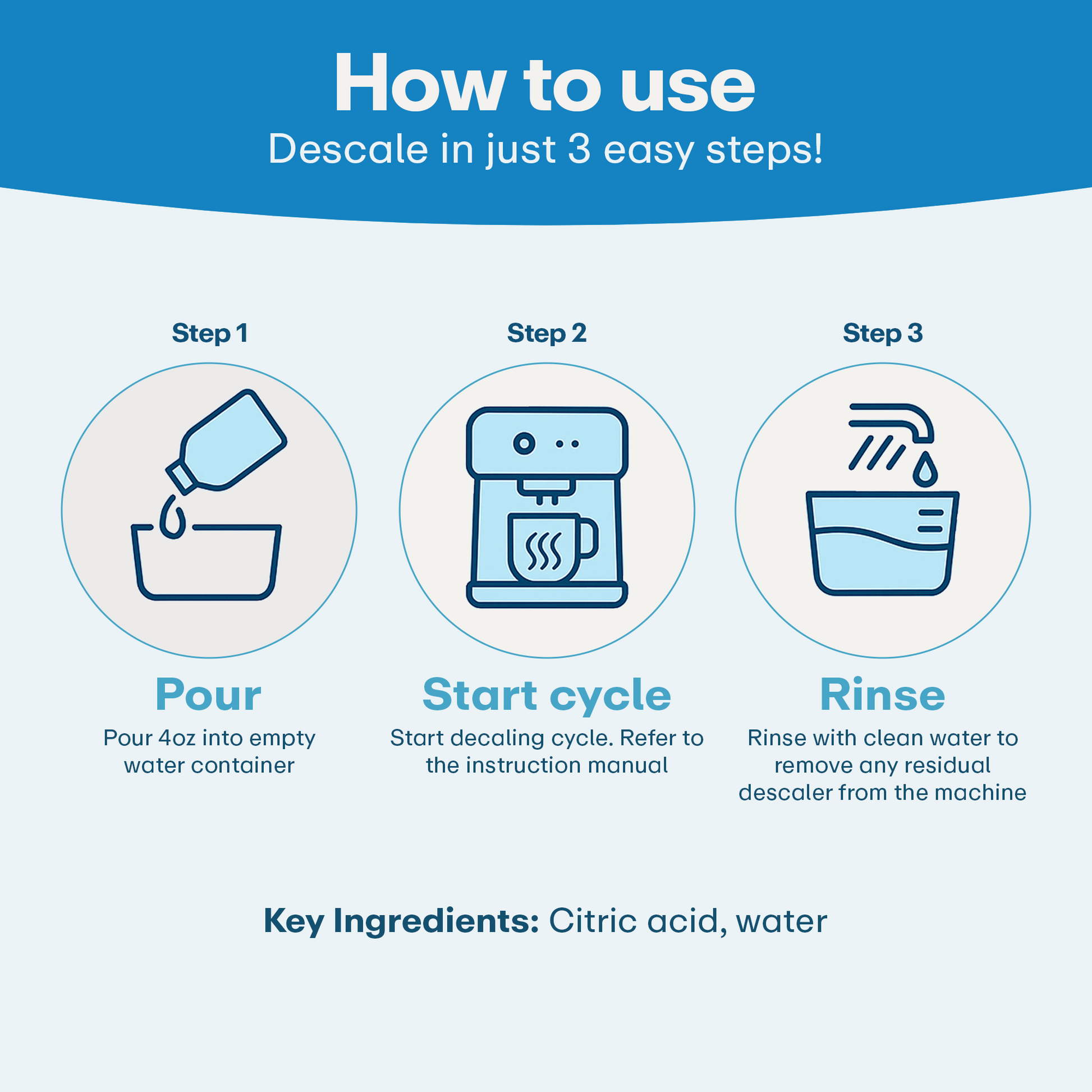 - Restores Brew Temperature & Flow – Clears internal water circuits of limescale buildup that can lower brew temps and slow performance—essential for great-tasting espresso.