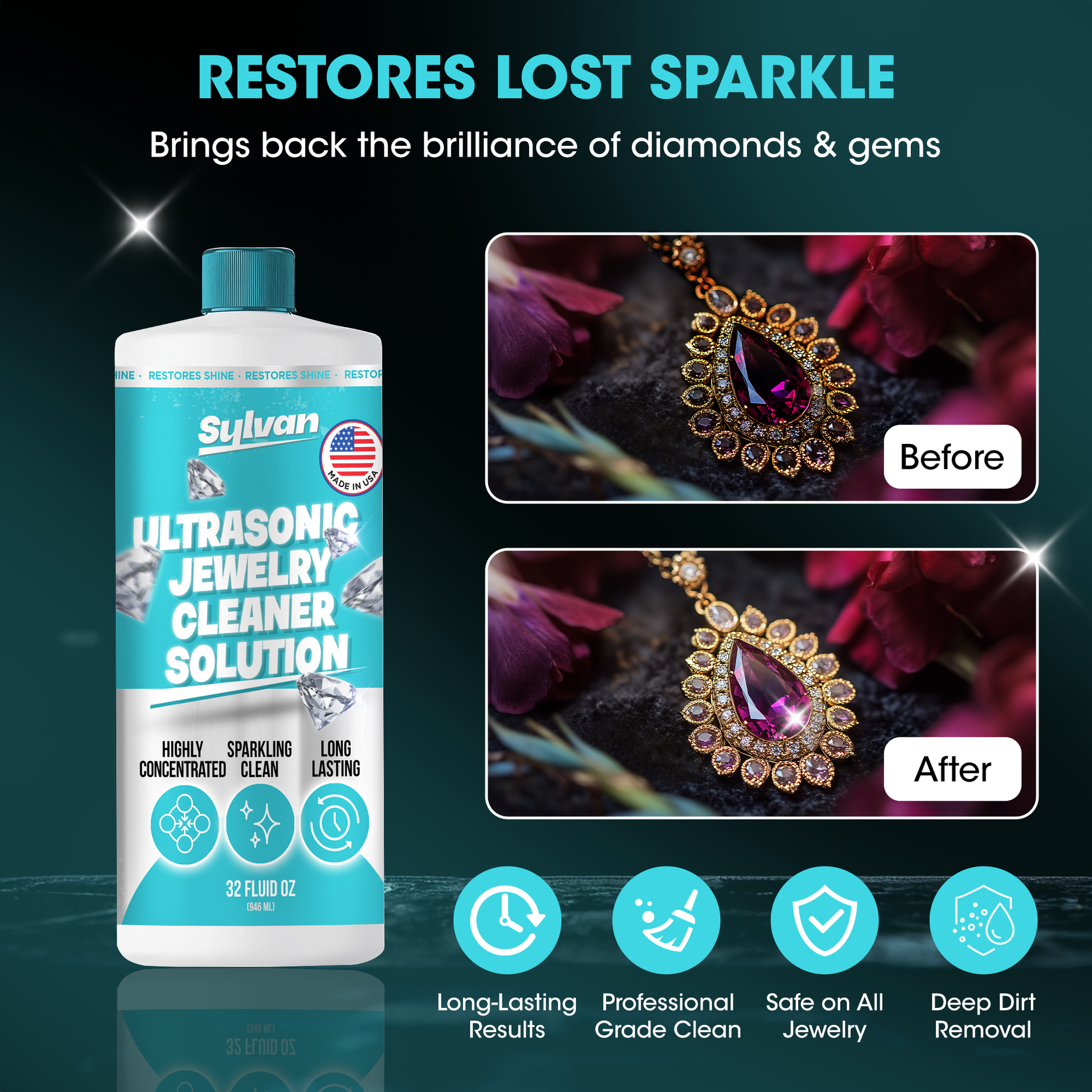 - Restores Sparkle to Jewelry – Effectively removes dirt, lotion, oil, and fingerprints from rings, earrings, necklaces, and other delicate items. Ideal ultrasonic cleaner solution for gold, silver, diamonds, and gemstones.